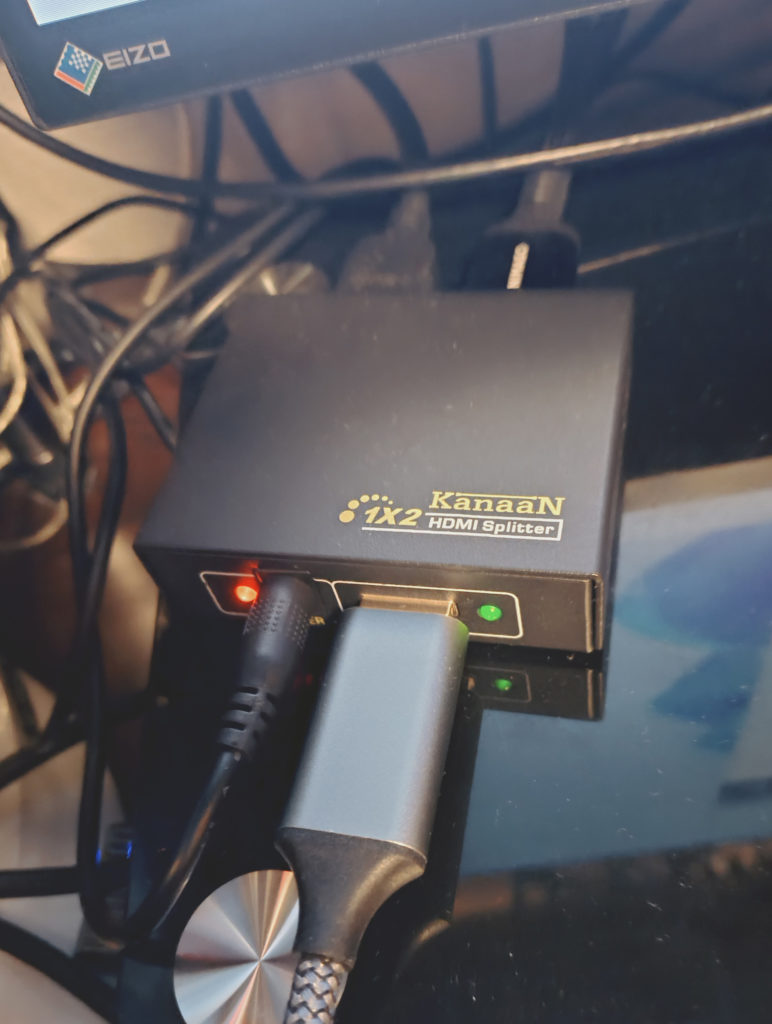 ※AVアンプの出力をスプリッターに接続しておけば当該スイッチに切り替えることでAVアンプの設定画面やHEOSの再生画面を表示することができます