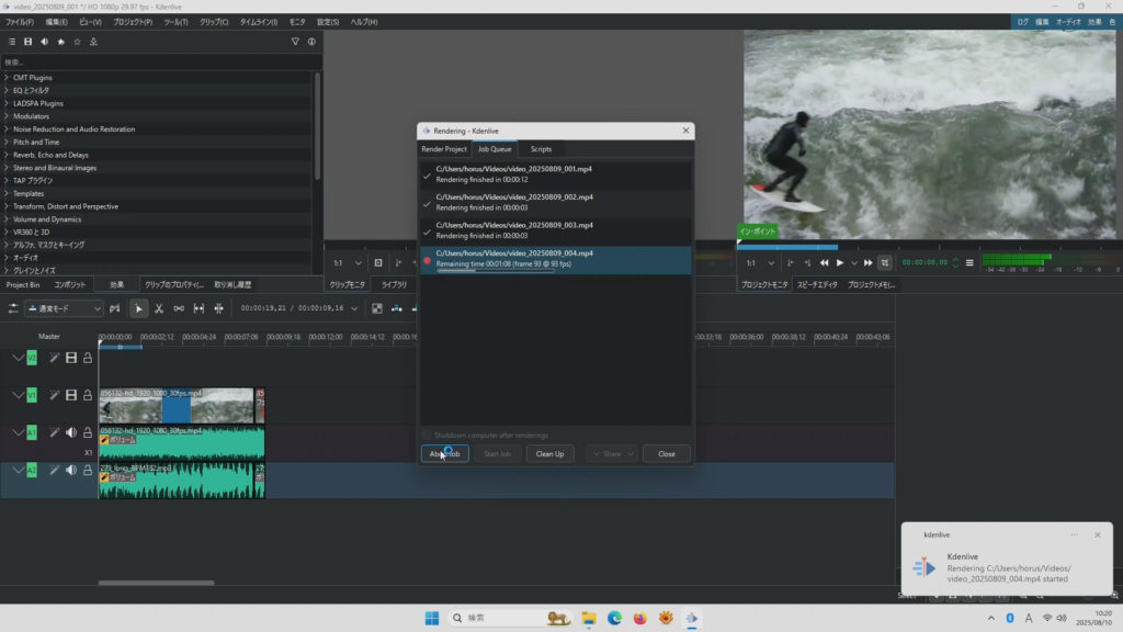 ですが、素材となる元ビデオを編集した後ハイクオリティで1本出力しておいて、後は用途に応じエンコーダーソフトでエンコードして使い回すってやり方が一般的であり、どの動画編集ソフトでもハイクオリティのプリセットはCPUエンコードなので、仮にUbuntu+Kdenlive環境でGPUエンコードが動作しなくても、それ自体が欠点というわけではありません。