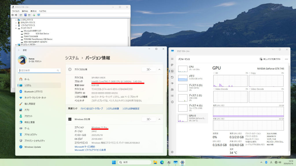 Microsoft Learnにしたがって作成したネイティブブートVHDXをMBR BIOS用に作成したブートディスクにコピーして、以前にRufusのWindows To Goで作成したWindows11を起動テストしたSandy Bridgeマシンで起動してみたところ全く問題なく起動し動作しました