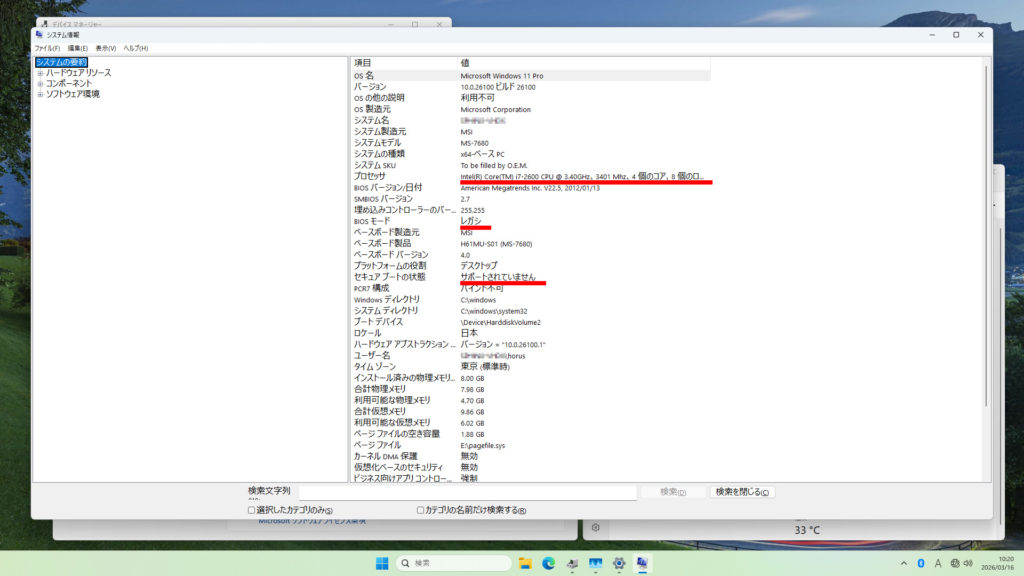 Windows11のシステム要件を何一つ満たしていない